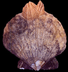 Chesopectens sp. (scallop) and barnacles Richmond, Virginia Cenozoic Era, Tertiary Period, Miocene Epoch |