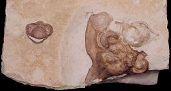![]() (there are also two brachiopods on the Huntonia) about 400 Mya |